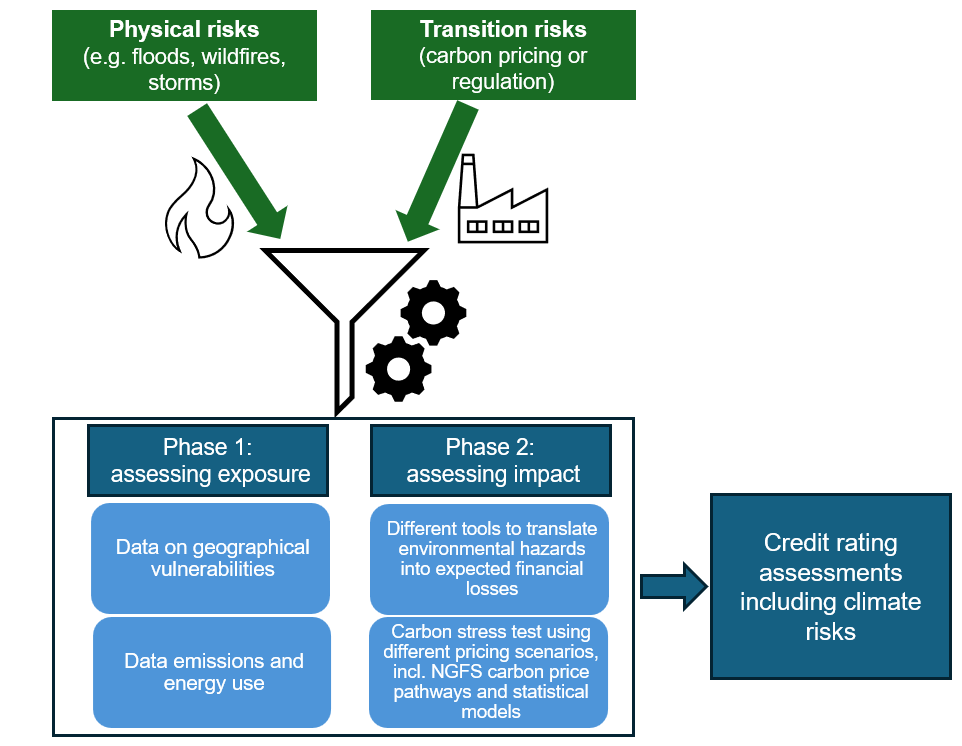 The ICASs use internal carbon stress tests to simulate how transition risks affect company finances. Different jurisdictions apply different pricing scenarios, including the carbon price pathways of the Network for Greening the Financial System (NGFS) and statistical models. These inputs feed directly into the adjusted financial projections of credit issuers – i.e. borrowers’ expected financial performance – and can lead to changes in ratings.